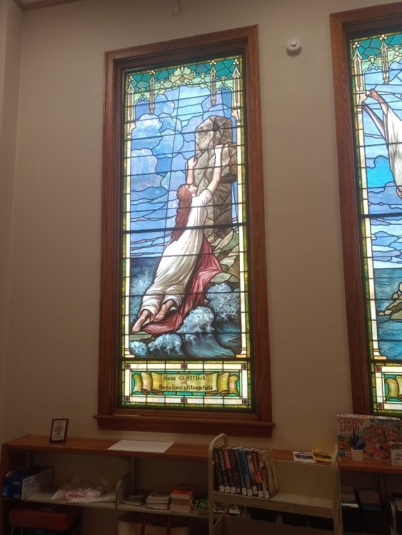 A small town library finally outgrew their building and recently moved into an old church. I love these stained glass windows. If I go back I'll see what other pics I can grab.