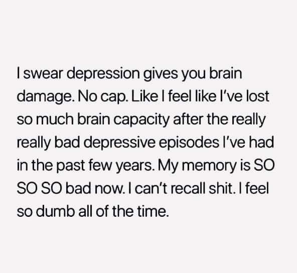 Guest Posted November 15, 2022 Report Posted November 15, 2022 I relate so closely to the second photo you posted @Redneck-Kitty..with my Generalized Anxiety, i feel like i have lost all control over my brain. I would lose hours, flip a page on a textbook and forget what i just read, have to have someone repeat what they just said because i heard them but it didnt really store correctly in my brain but on the flipside I could describe things that happened a million years ago in great detail, remember where I placed something months ago or remember a friend's childhood number... I legit thought i was making it up (i was countlessly told i was making it up so I just started believing I did). It wasn't til I got older, learned about how anxiety, depression, etc can effect how your brain stores things, and how the Flux of chemicals released can damage memory storing that I understood it wasn't my fault I had these issues. I wasn't a broken doll that was worthless but the things that broke me is what made my brain this way. And that I can slowly work to build it back, but it will take years to undo what has been done.