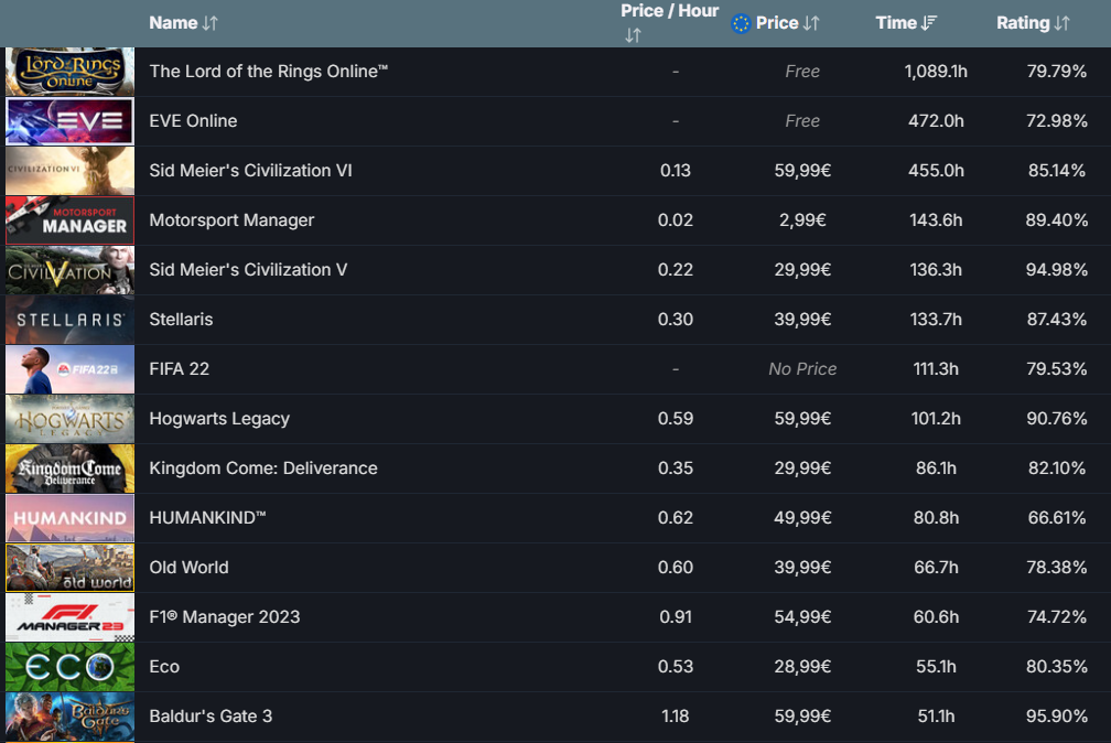 The figures for The Lord of the Rings Online and Eve Online are not correct though, as I use and alöternative client for Eve and I have connected Lotro and Steam just a view years ago, have been playing since 2007...